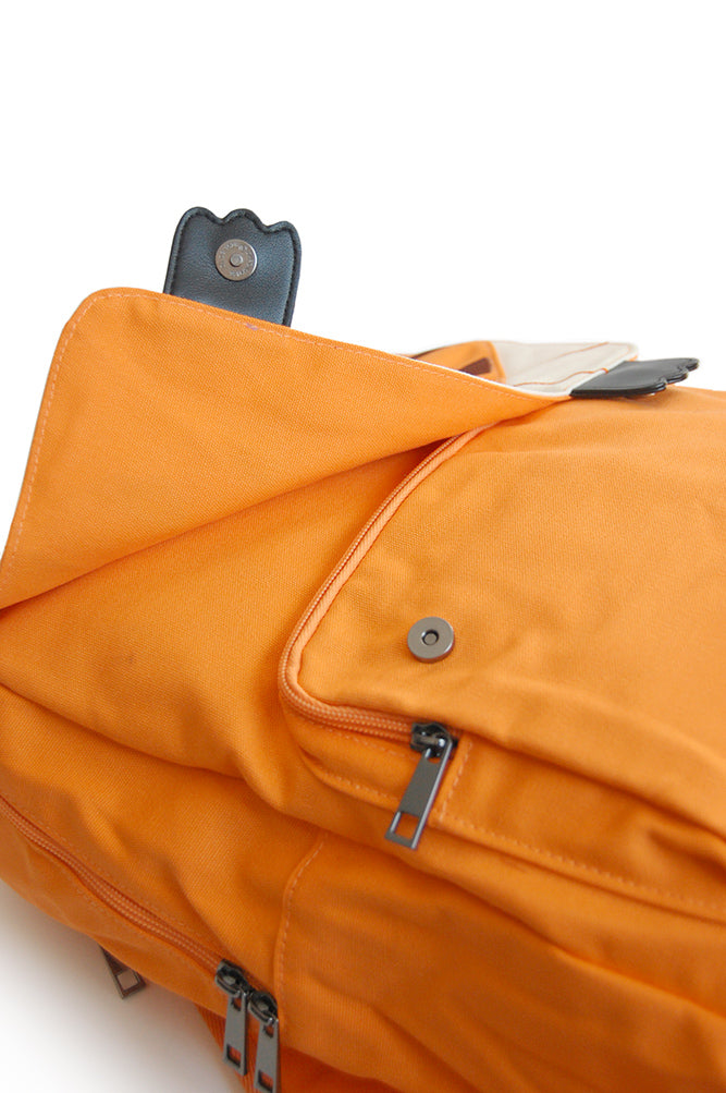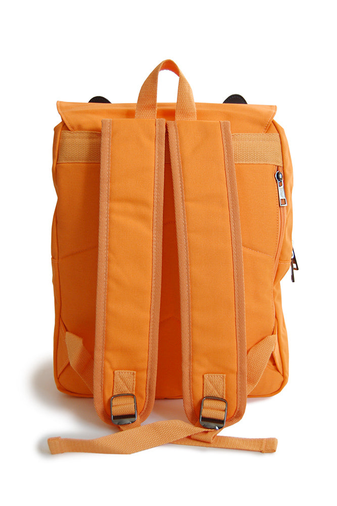 Her face is embroidered on the front flap with cute ears and paws to match. The flap front is held down by magnets under her paws. Under the flap, the bag has one big main pocket that's zippered, plus a front pocket. The white markings on the tiger are sewn on with canvas appliques for a neat and tidy appearance.